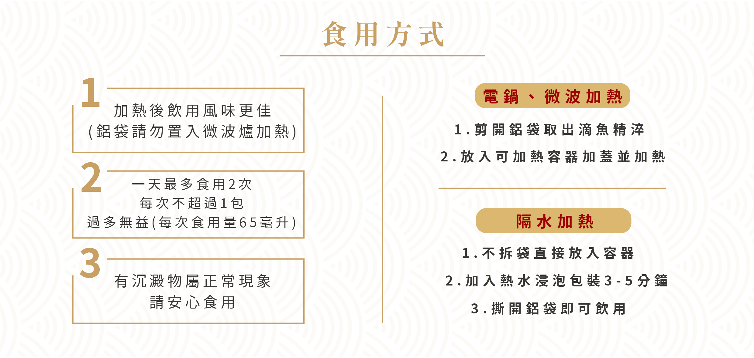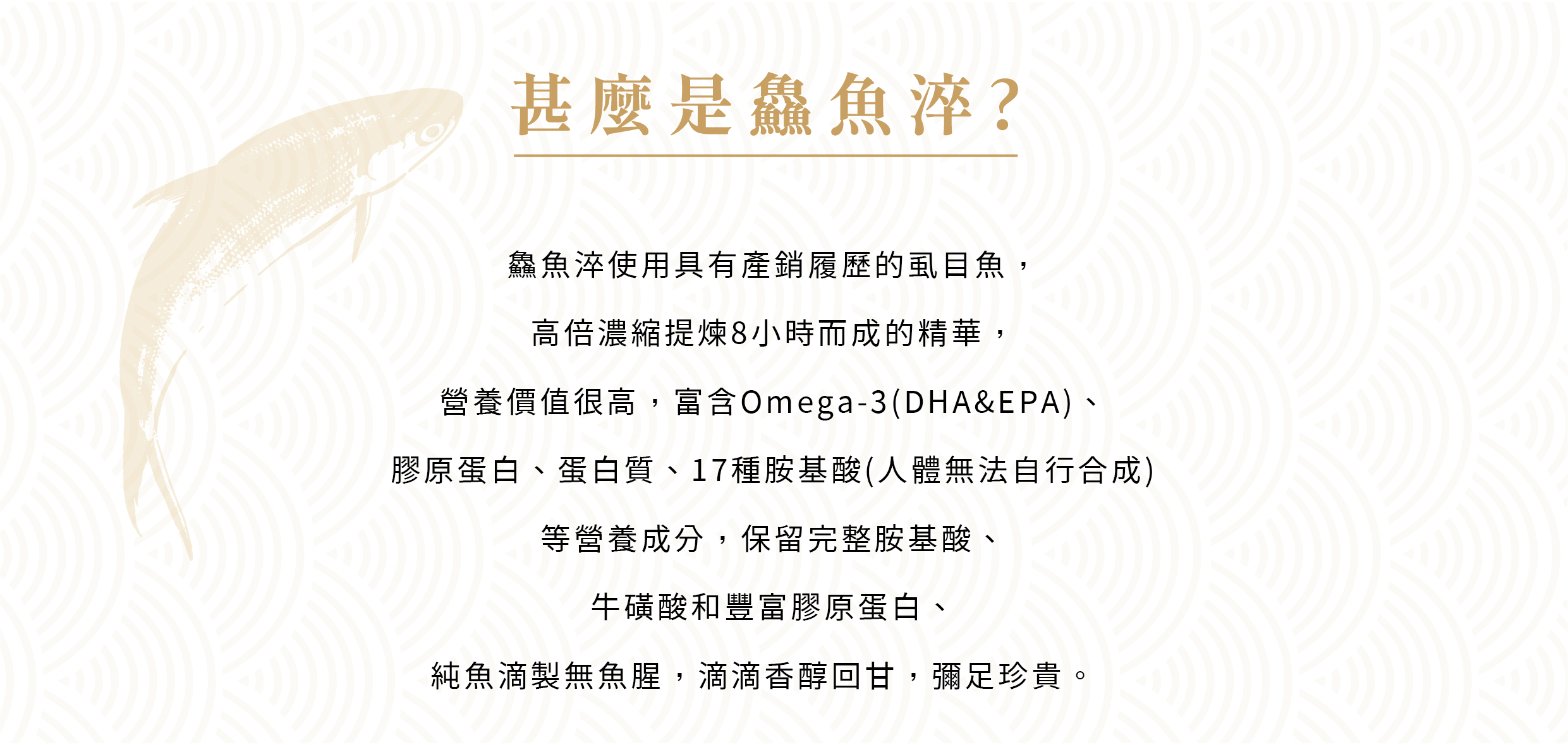 膠原蛋白、純魚滴製無魚腥,滴滴香醇回甘,彌足珍貴。