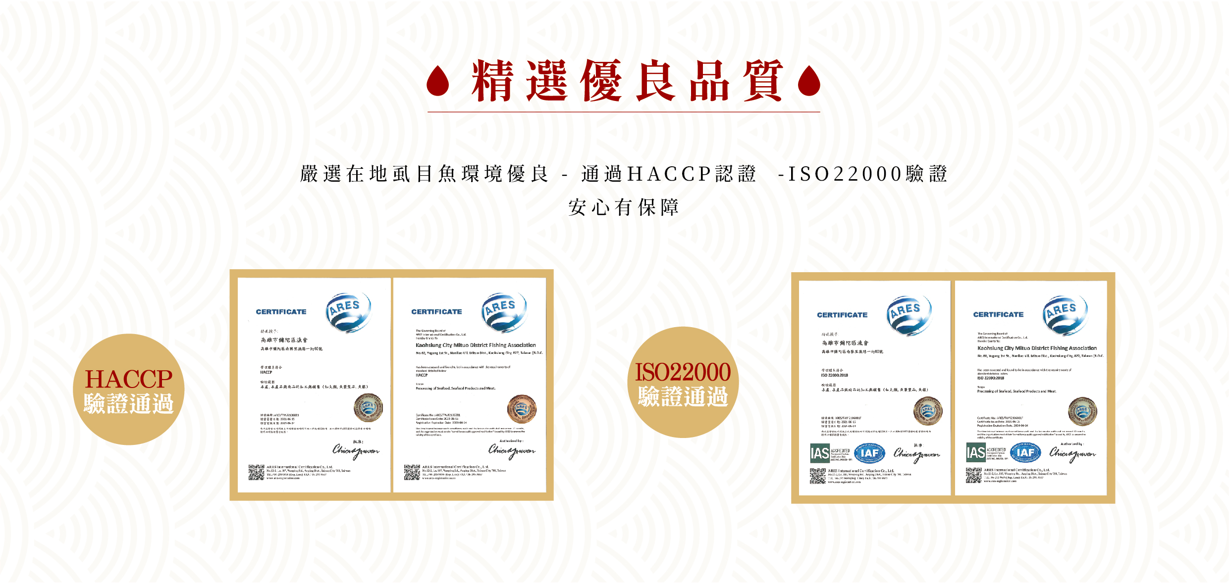 嚴選在地具產銷履歷虱目魚,且食材通過HACCP認證、環境優良,以深水式海水養殖,