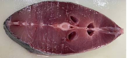 六帶鰺(瓜仔魚)輪切片,是一種美味無腥臭的海魚,可清蒸、乾煎或紅燒。